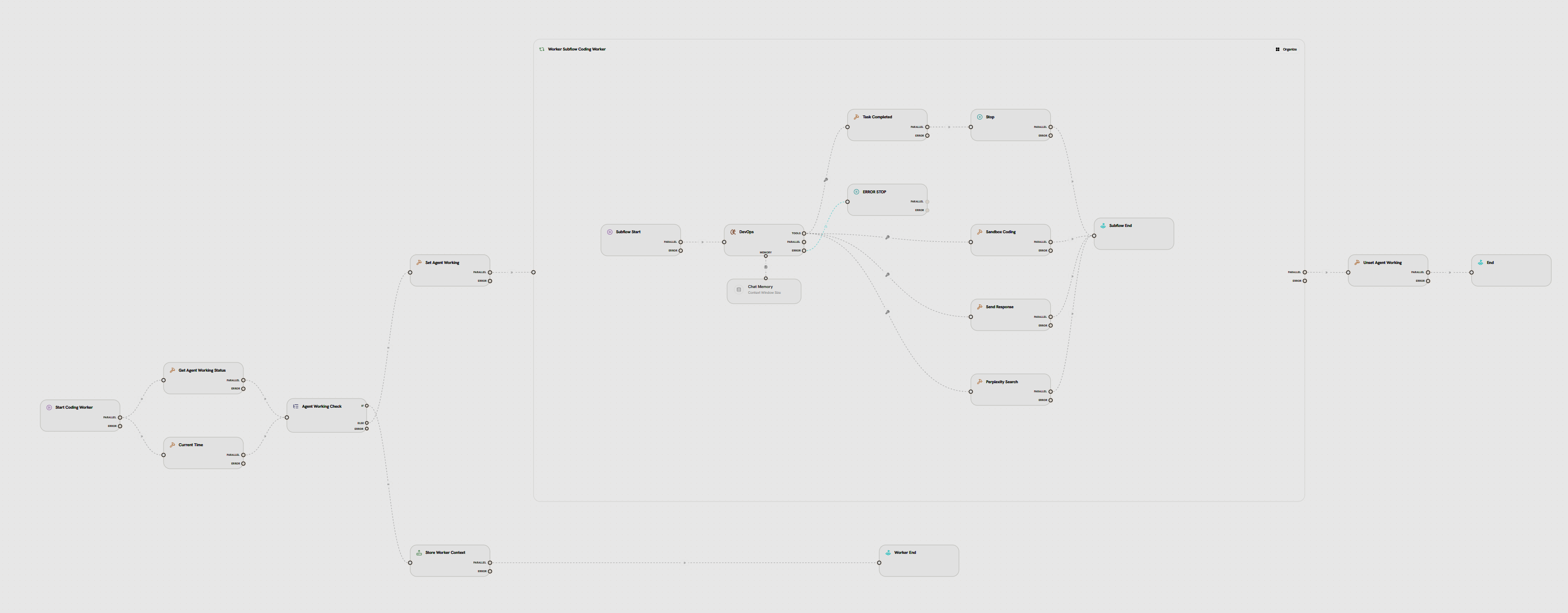 A single agent is built using a Subflow Node containing:- Start Node - Entry point for each iteration